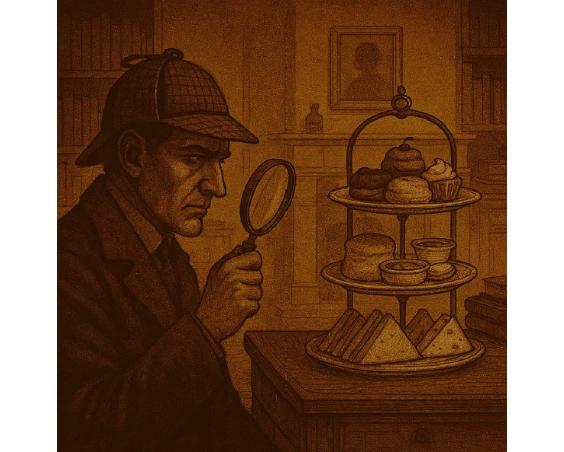 Step through the door of Ms. B’s on the High Street and into the warm glow of 221B Baker Street—our tearoom transformed for one unforgettable evening into the cozy, cluttered study of the world’s greatest detective. The lamps are low, the clues are scattered, and the scent of spiced tea drifts through the air. The game is most certainly afoot.