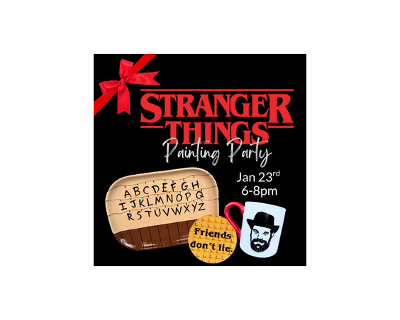 Give the gift of a painting experience this holiday season! Step into the Upside Down for a night of creativity! Join us for Stranger Things Painting Party, where we will channel our inner Eleven, crank up the ‘80s tunes, and paint pottery inspired by the show.